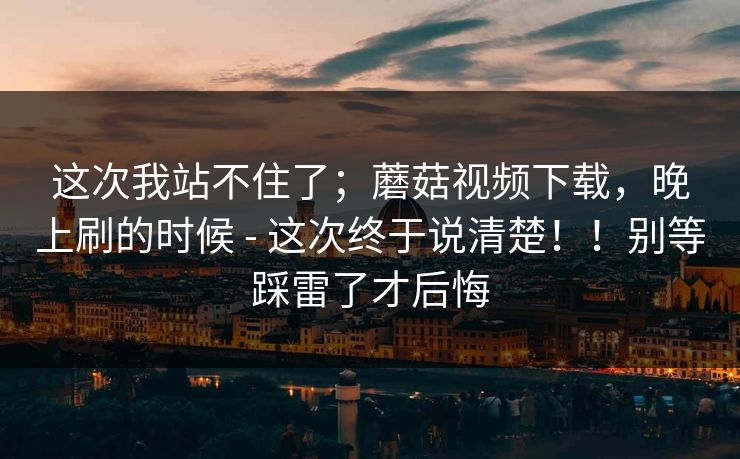 这次我站不住了;蘑菇视频下载,晚上刷的时候 - 这次终于说清楚!!别等踩雷了才后悔