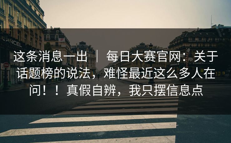 这条消息一出 | 每日大赛官网:关于话题榜的说法,难怪最近这么多人在问!!真假自辨,我只摆信息点